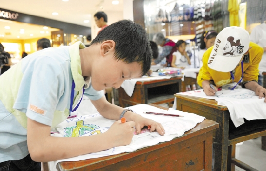 5月22日,东阳市举行了一场别开生面的T恤涂鸦设计大赛,众多少年、大学生、市民挥洒灵感,创造出属于自己的T恤文化。 东阳日报记者 包康轩 摄