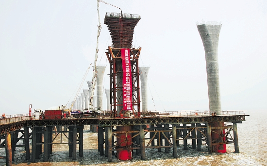 近日,杭州湾第二座跨海大桥——嘉绍大桥北岸水中区130座墩身浇筑顺利告捷。嘉绍大桥北岸水中区桥墩系单桩独柱结构,为国内首次采用,结构新颖,桥墩施工难度大。