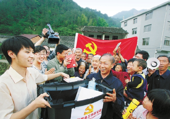 日前,中国美院学生党员来到仙居县皤滩乡长埂村慰问农村老党员,并捐赠“党务工作百宝箱”。 邵全海 徐增鎏 摄