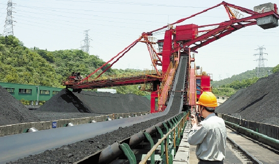 日前,台州发电厂缷煤码头正在紧张作业,以保障机组稳定发电。夏季用电高峰将到,浙能集团全力以赴确保机组稳发多发,保障我省用电需求。 朱将云 曹忠东 摄