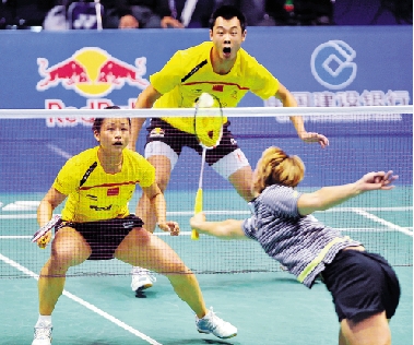 马晋(左)/徐晨担任先锋,助中国队在首场比赛中以4比1战胜德国队。 新华社发