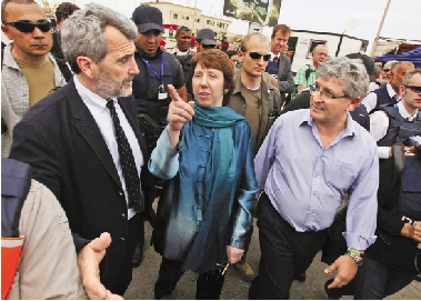 图为5月22日,欧盟外交与安全政策高级代表兼欧盟委员会副主席阿什顿(中)访问利比亚班加西。 新华社发