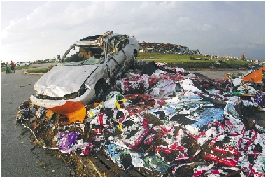 5月22日,一辆轿车在美国密苏里州乔普林市遭遇的龙卷风袭击中被破坏。