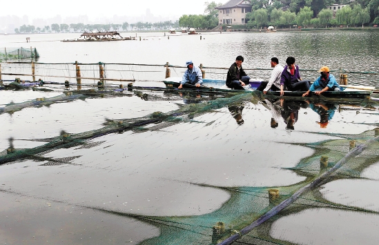西湖选草净水质