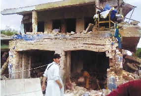 5月26日,在巴基斯坦西北部靠近阿富汗边境的亨古地区,一名男子站在被炸毁的房屋旁。新华社发