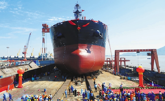 5月30日,舟山浙江正和造船有限公司一艘为东莞海昌船务有限公司建造的7万吨级散货船顺利下水。 舟山日报记者 江勇 通讯员 徐丹 摄
