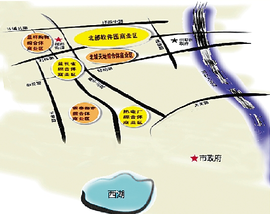 在拱墅区城市建设政府性投资130亿元的14个城市综合体中,祥符板块就占了六个。图为六个城市综合体示意图。