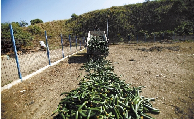 | 西班牙政府有关部门人士5月31日表示,如果最后调查结果证明,最近德国暴发的肠道疾病感染源不是来自西班牙的黄瓜,西班牙不排除要求德国赔偿经济损失,从而缓解西班牙果蔬业因德国政府的草率言行而蒙受的重大损失。据估计,西班牙蔬果种植业损失可能将达2亿欧元。 图为5月31日,在西班牙南部阿尔加罗沃的一家农场,菜农卸下一车黄瓜准备给山羊喂食。 (据新华社) |