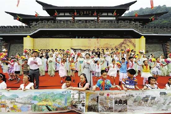 海峡两岸小朋友共绘《现代山水童画》。 本报记者 梁臻 通讯员 魏志阳 摄
