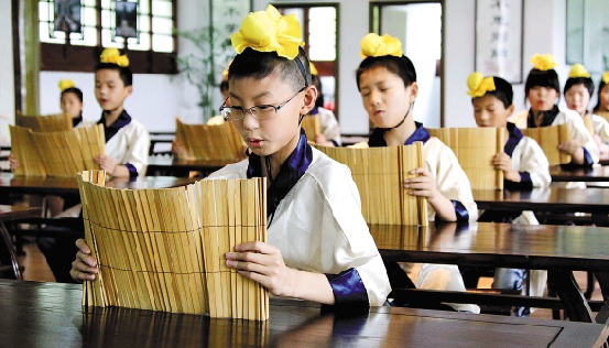 萧山义桥孔子学堂的学生们吟诵《离骚》,纪念伟大的爱国诗人屈原。 曹辉 摄