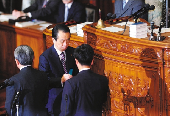 6月2日,日本首相菅直人在现场投票。 新华社记者 季春鹏 摄