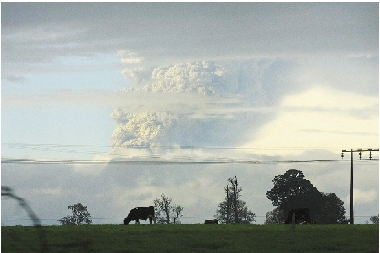 这是6月4日从智利南部奥索尔诺拍摄的喷出浓烟的普耶韦火山。 新华社发