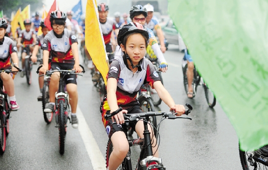 6月5日是世界环境日,由温州市第23中学的师生组成的环保骑游队走上街头,宣传“低碳生活、环保出行”。