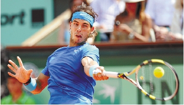 6月5日,在2011年法网男单决赛中,西班牙选手纳达尔历经四盘鏖战,3比1战胜瑞士选手费德勒,再度获得桂冠。图为纳达尔在比赛中回球。 新华社发