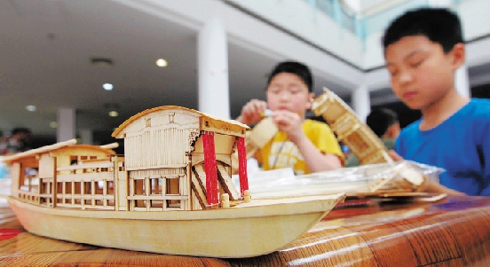 6月5日上午,2011年温州市青少年建筑模型锦标赛在温州市青少年活动中心举行,学生正在现场制作嘉兴“南湖红船”模型。郑鹏 摄