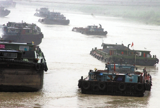 连日的强降雨,使拥堵数天的德清县东苕溪砂村航道终于畅通。6月7日,约600艘货船陆续开航。