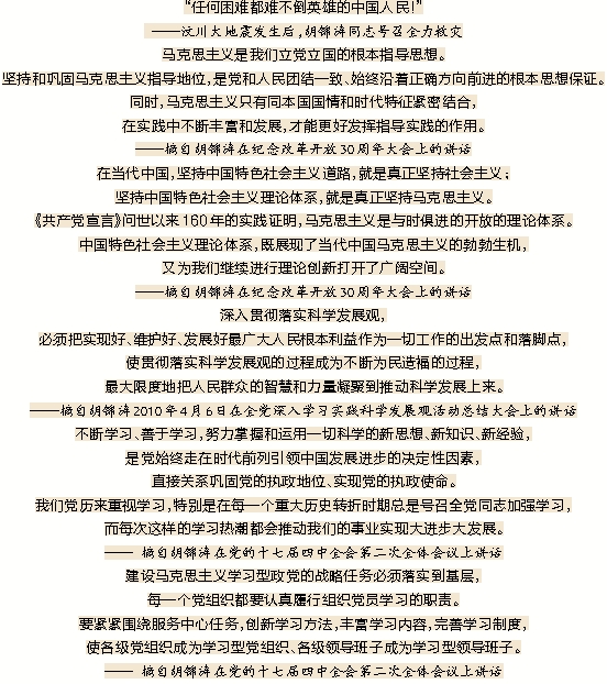 ——摘自胡锦涛2010年4月6日在全党深入学习实践科学发展观活动总结大会上的讲话