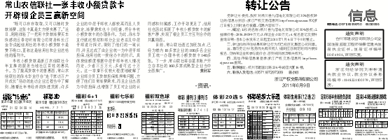 受转让方委托,我所对淅川县九信电化有限公司30%股权转让的信息分别在:浙江产权交易信息网http://www.zjpse.com和《浙江日报》上同时进行披露,信息内容如下: