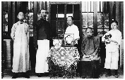 钱学森(左一)和父亲(左二)、母亲(左三)、外婆(右二)在杭州方谷园2号的合影