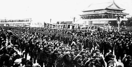 1976年10月21日,首都150万群众举行盛大游行,欢呼粉碎“四人帮”的历史性胜利。 新华社发(资料照片)