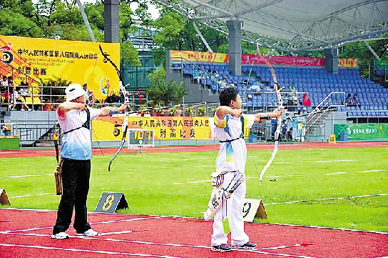 6月12日,全国第八届残运会射箭比赛继续在杭州第一技师学院举行。