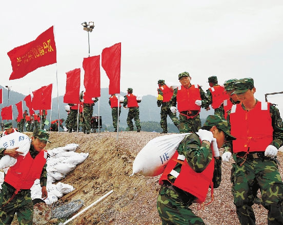 部队举行抗洪抢险演练。 省军区政治部供图