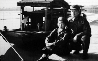 1978年,章水强第一次带新婚妻子王莉回乡探亲时在红船旁合影。