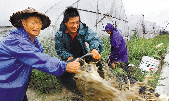 昨日,宁波江北区庄桥街道胡家村的菜农正抓紧在菜地清沟排水。