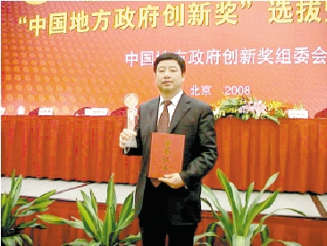 义乌市总工会“工会社会化维权模式”获得2011年首届浙江省公共管理创新案例特别贡献奖;2008年获得“第四届中国政府创新奖”。图为2008年1月19日,中国工会十五大执委、义乌市人大常委会副主任、总工会主席陈有德在北京颁奖现场。