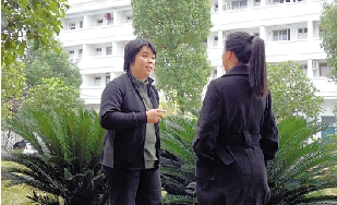 临海村官项玉君(左)在和村民交谈,了解他们心中所思所想。