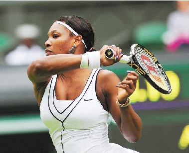 6月21日,美国选手小威廉姆斯在比赛中回球。当日,在2011年温布尔登网球锦标赛首轮比赛中,女单卫冕冠军小威廉姆斯以2比1击败法国选手雷扎伊,晋级下一轮。 新华社发