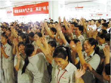 ↑2005年10月12日,德力西集团党委组织员工观看神六发射现场直播,员工们为德力西电气成功助飞神六欢呼