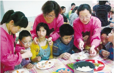 | 杭州星辰幼儿园的党团员教师近日来到健康实验小学(智障学校),以“学会生活、享受生活”为主题进行爱心助教。在他们耐心带领下,孩子们学习配菜、制作爱心便当、烤制曲奇饼干,参与兴致很高。 通讯员 张海燕 摄 |