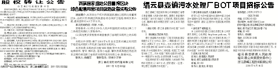 本公告同时在《浙江日报》及缙云县公共资源交易网上公告。有意向的投资人可在缙云县公共资源交易网上下载附件《缙云县壶镇污水处理厂BOT项目报名表》,并于2011年6月28日下午5时整(北京时间)报名截止时间前,将填写完整的《缙云县壶镇污水处理厂BOT项目报名表》递交至招商人处。