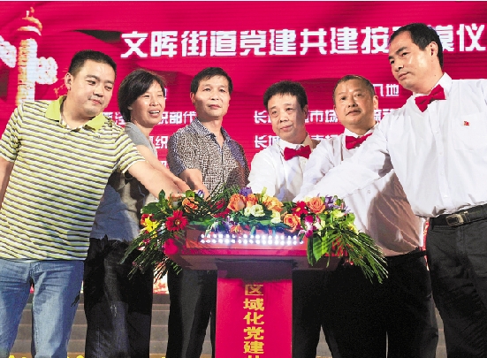 | 党员结对共建 6月23日,来自安徽泾县、温州瑞安市等地的200多名在杭流动党员,以及杭州文晖街道社区党员共800余人,以共建结对、共建共享的方式,共同庆祝党的九十华诞。 本报记者 李震宇 通讯员 梅育生 摄 |