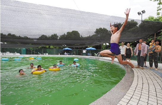 桐乡市屠甸镇汇丰村新建的游泳池里,孩子们在欢快地嬉戏。汇丰村原是经济薄弱村,经过该市项目引进等“壮大工程”政策的扶持,目前该村集体可支配收入已经超过80万元,新农村软硬件建设得到大幅提升(本报资料照片)。