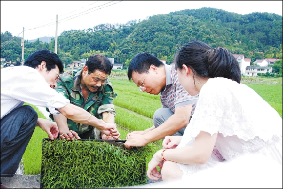 6月26日,建德市农技专家来到受洪灾严重的大洋镇徐店村田头。种粮大户蒋秀仙遇到晚稻秧苗根系腐烂等灾后问题,农技专家及时传授良方,帮助解决问题。