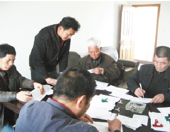 八里店镇塘红村民主理财小组根据“三重两轮票决制”规定,进行重大财务核算工作