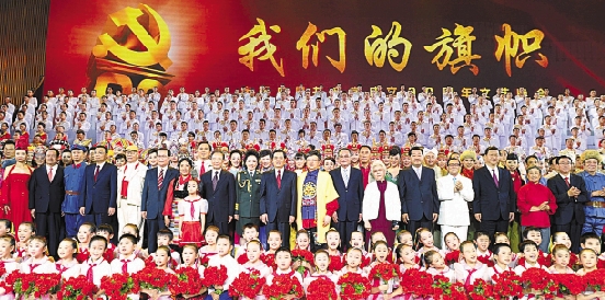 胡锦涛等中央领导与各界群众观看庆祝建党90周年文艺晚会