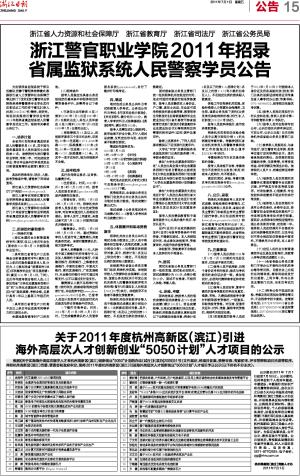 浙江警官职业学院2011年招录