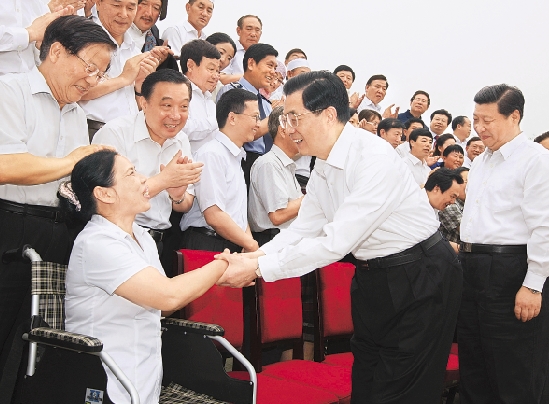 7月2日,全国先进基层党组织和优秀共产党员、优秀党务工作者代表纪念建党90周年座谈会在中南海召开。会前,胡锦涛、习近平等中央领导同志亲切会见与会代表。