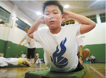 昨晚的浙江全民健身中心篮球馆内,热浪滚滚,二十多名十四五岁的小男生正跟着专业教练挥汗如雨,折返跑、俯卧撑、力量练习,一切的一切,只为明年的那场中考体育测试。