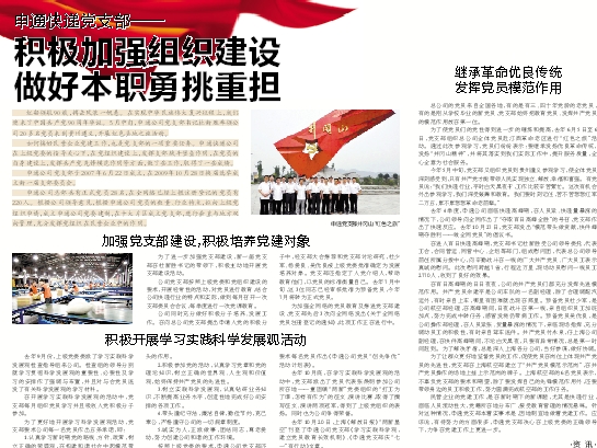 去年10月20日,上海《解放日报》“两新星空”刊登了申通公司党支部《学习实践科学观,建立党员教育长效机制》、《申通党支部庆“七一”有行动》文章。