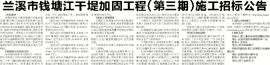 兰溪市钱塘江干堤加固工程(第三期)施工招标公告