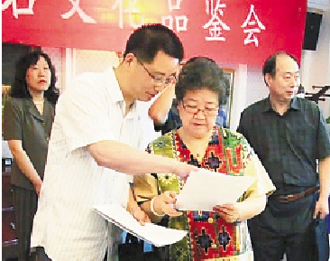 我省著名作家叶文玲与有关专家探讨赏石之道。