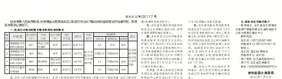 四、本次拍卖出让的详细资料和具体要求,见《拍卖出让文件》。申请人可于2011年7月8日至2011年7月27日,到安吉县招投标中心(安吉县递铺镇玉华路23号工商银行三楼)获取拍卖出让文件,并提交书面申请,交纳竞买保证金的截止时间为2011年7月27日下午3时(以银行到账为准)。