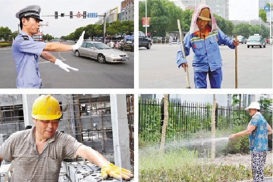 7月7日,慈溪最高温度达38.7℃,在建筑工地、马路上……我们仍然可以看到各行各业的劳动者在岗位上奋战的忙碌身影。 慈溪日报记者 孙丰立 摄
