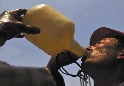 高空作业, 党员周其宝大口喝水仍不解渴。