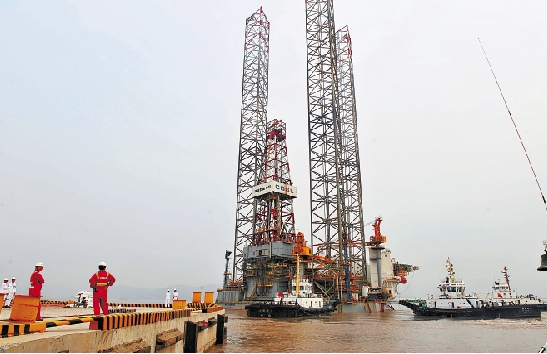 | 昨日,“海洋石油942”号钻井平台缓缓进入太平洋海洋工程(舟山)有限公司的40万吨级船坞。这是舟山承接维修的第二艘海洋石油钻井平台。 舟山日报记者 沈磊 摄 |