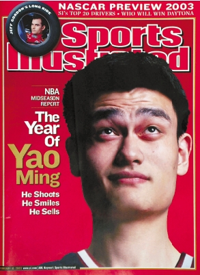 这是2003年2月10日出版的美国杂志《体育画刊》,将姚明的头像刊登在封面上。这本著名的体育杂志把过去的一年称为“姚明之年”。